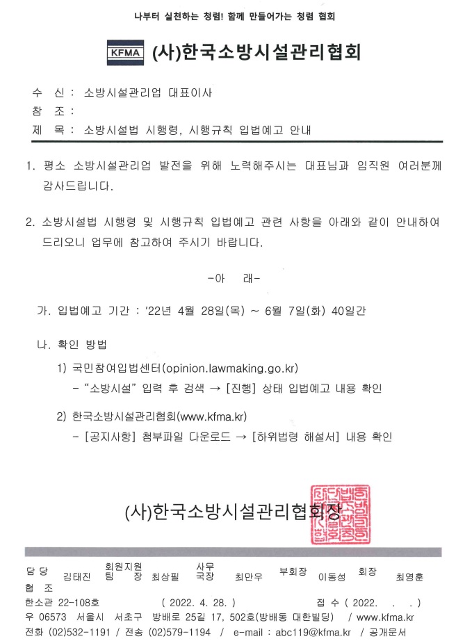 | 입법예고 관련 소방시설관리업 기술인력 기술등급 Q&A (1) | 2022.05.08 |